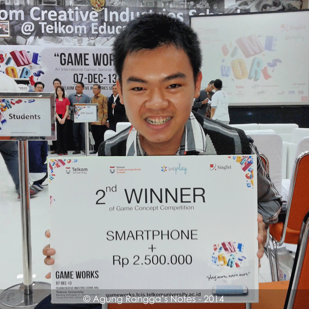 Nah, kira-kira seperti itulah cerita saya mengenai Game Concept Competition 2013. Saya bersyukur sekali karena Tuhan telah memberikan kesempatan ini. Kesempatan untuk menunjukkan bahwa saya bisa. Dan ini, adalah awal dari perjuangan saya.