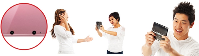 Konsol ini juga menyematkan kamera, bukan cuma 1, melainkan 3 sekaligus! 2 kamera di bagian luar berfungsi untuk menangkap foto berefek 3d, yang bisa ditampilkan di layar atas 3DS. Sementara 1 kamera ada di bagian dalam untuk kamu yang hobi selfie. Ditambah lagi ada 2 sensor game yang bisa memudahkan kita dalam bermain! Motion sensor dan gyro sensor akan beraksi ketika kita memiringkan atau memutar 3DS, sehingga menambah keseruan pas waktu bermain.