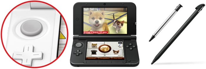 Yay, inilah fitur favorit saya! Pertama, 3DS memiliki 2 buah layar, layar atas untuk menampilkan efek 3D, layar bawah sebagai layar sentuh dengan menggunakan bantuan stylus! Jadi, bermain game di 3DS tidak akan membosankan, karena kita bisa berinteraksi dengan mudah berkat 2 layar ini. Kedua, adanya kontrol analog yang memudahkan kita menggerakkan karakter dalam game dengan lebih luwes, jadi gak perlu capek-capek lagi pencet tombol arah (d-pad).