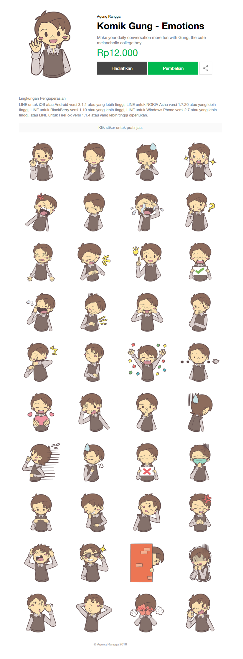 Curhat – Pengalaman merilis sticker LINE pertama ini benar-benar berkesan! Mulai dari mencicil gambar sticker setiap hari, mengikuti perlombaan sticker di platform sebelah, menunggu proses review yang cukup lama hingga perasaan pas ditolak. Pada akhirnya, sticker berjudul “Komik Gung – Emotions” muncul juga di LINE STORE. Sebuah proses panjang yang sungguh seru!